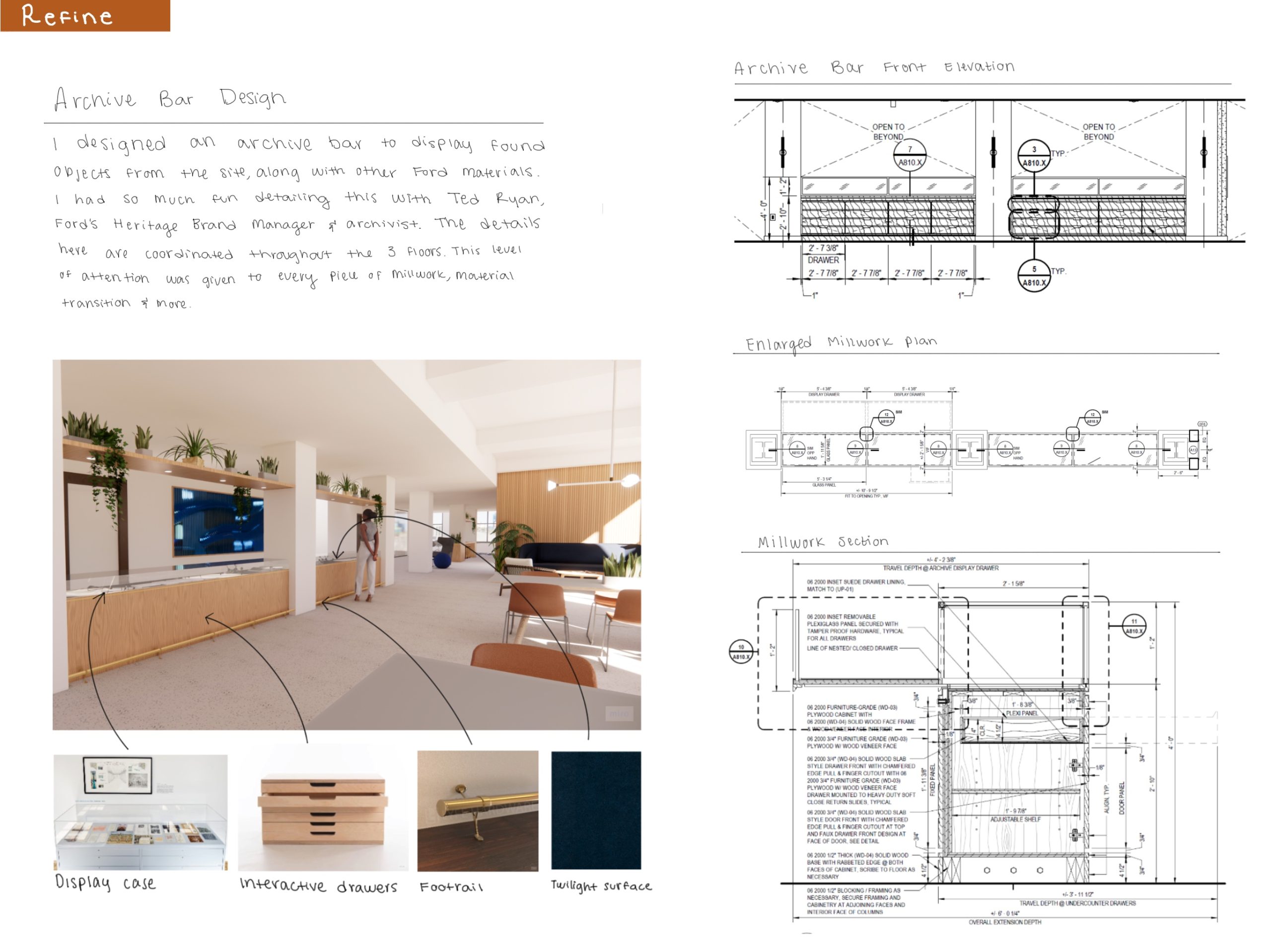 Ford established a prominent presence in Michigan Central Station by creating a technology and mobility hub that connects their historic Dearborn base with the vibrant future of Detroit. I had the rare opportunity to define the strategic direction for three floors of the station, shaping Ford’s approach to engaging with this unique community. This transformative project aims to foster collaboration, innovation, and employee retention, with one floor dedicated to an open collaborative environment and the remaining floors as assigned workspaces.